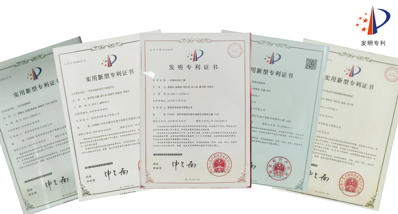 華昕注重產品質量和技術創新,經過多年的努力和發展,擁有30多項設計專利,華昕在晶振行業樹立了良好的聲譽,服務超1萬+家客戶,持續為國內外客戶提供高精度、高穩定性的石英晶體頻率器件。擁有一支高素質的技術團隊,20年行業經驗FAE為客戶專業匹配選型,且不斷研發新型晶振產品以滿足不斷變化的市場需求。擁有先進的全自動生產設備+萬級無塵車間和嚴格的質量控制體系,確保晶振的穩定性和可靠性。先后通過ISO14001及ISO9001企業質量管理體系認證和ROHS認證及REACH認證。始終秉承“質量第一,客戶至上”的宗旨,以滿足客戶的需求為己任,不斷推動晶振技術的發展和應用,為客戶的業務成功貢獻力量。